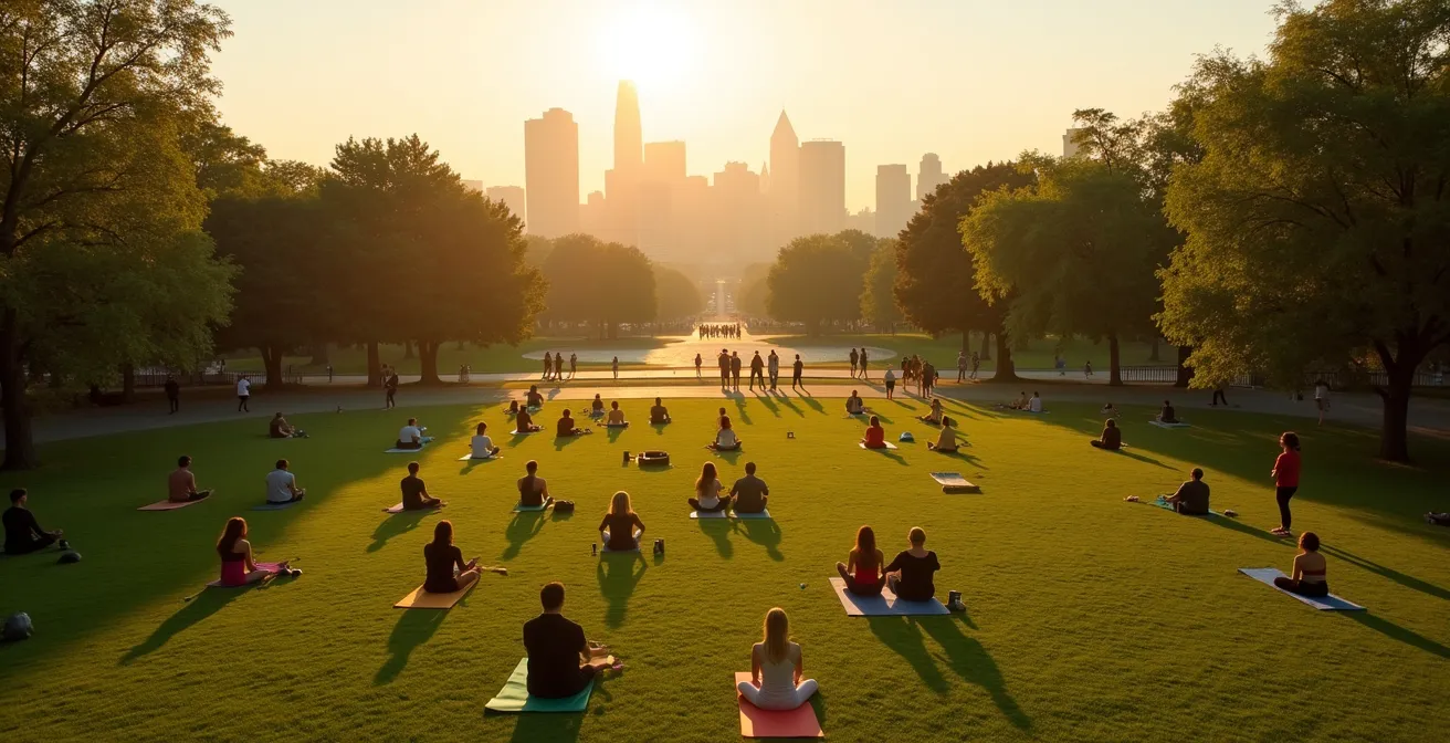 Comme le suggère cette image, la pratique n’est pas confinée à une salle. Apprendre les bases dans un centre permet ensuite de pratiquer n’importe où, que ce soit dans le calme de son salon, durant une pause au bureau, ou dans l’un des nombreux parcs de la ville comme le Mont-Royal ou le parc La Fontaine. L’important est de trouver le format qui vous convient : la rigueur d’un programme, la flexibilité d’un cours à la carte ou l’autonomie d’une pratique personnelle soutenue par des applications.